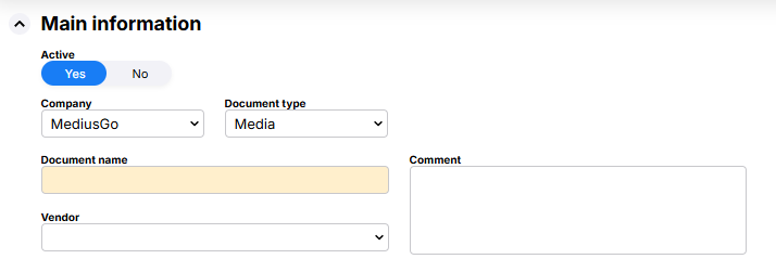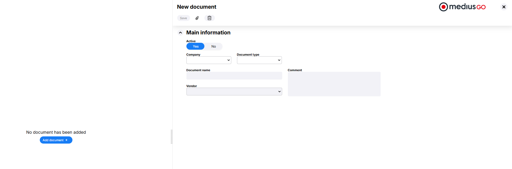 - Vendor: Select the vendor the document should be linked to. The document will be available on the selected vendor's invoices.