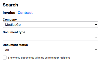 - Show only documents with me as the reminder recipient: Check this box if you only want to see documents where you are registered as the reminder recipient