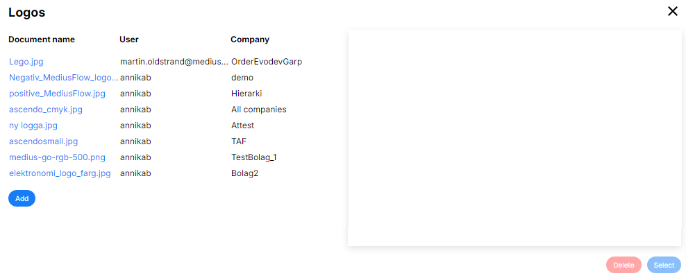 If you want to remove the selected logo from the letter, click on the trash can in the top right corner.