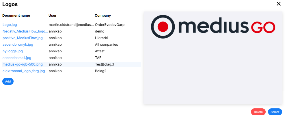 Click Add to add a new logo