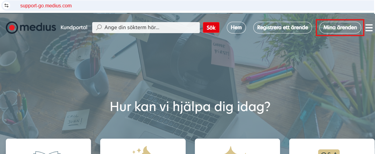När ärendet är inskickat kan Du följa detta på MediusGo kundportal genom att klicka på Mina ärenden överst på denna sida.