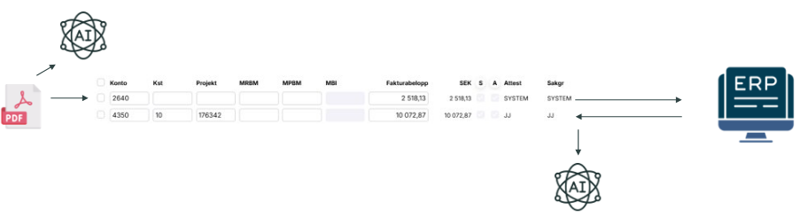 Smartflow föreslår en kontering, på max fem konteringsrader, och en sakgranskare och det fungerar på följande sätt: