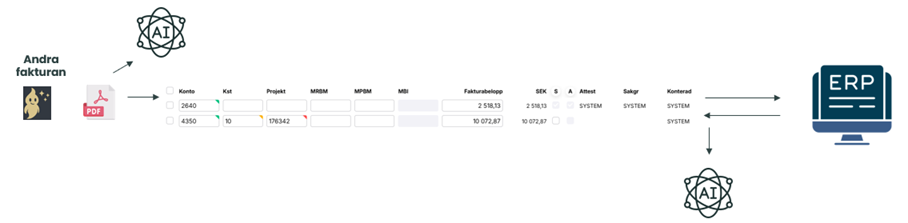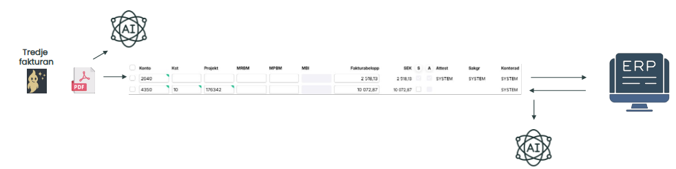 Genie Smartflow används för kontering och distribution av fakturor. Det är AI baserat och kräver ingen administration utan inlärningen baseras på feedback från MediusGo.